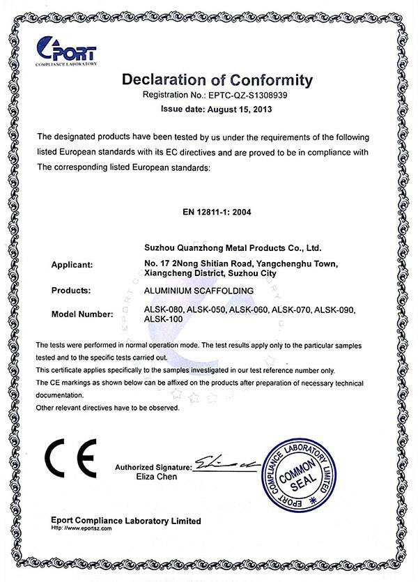 开云官方端网页站页面登录入口-开云(中国)专注铝合金制品的开发“产品就是人品”的企业理念,不断进行技术创新、设备创新、服务创新、和管理方式创新来继续研发出更多满足未来发展需要的产品, 公司产品通过欧盟认证取得CE认证并取得证书,铝合金脚手架系列产品通过SGS认证,铝合金平台和梯具类产品均严格按照GB12142-2007,GB17888等标准设计生产。